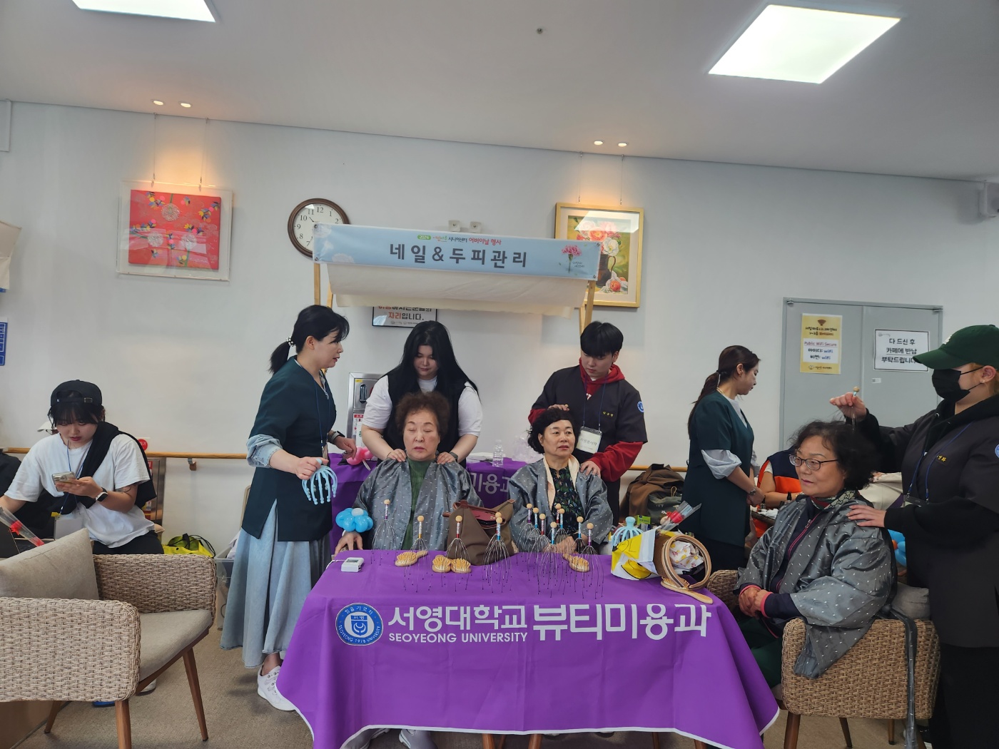 ○ 5월 가정을 달을 맞이하여 벌써 5월 4일에 이어 5월 8일에도 서빛마을 시니어 센터에서 두피모발관리 및 네일아트의 봉사가 진행이 되었다.