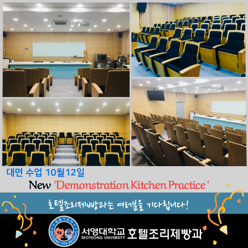 드디어 대면수업이 일주일 앞으로 다가왔습니다! 여러분이 없는 동안 호텔조리제빵과는 탈바꿈을 했는데요. 그 중 대표적인 것은 역시 데모키친의 변신!