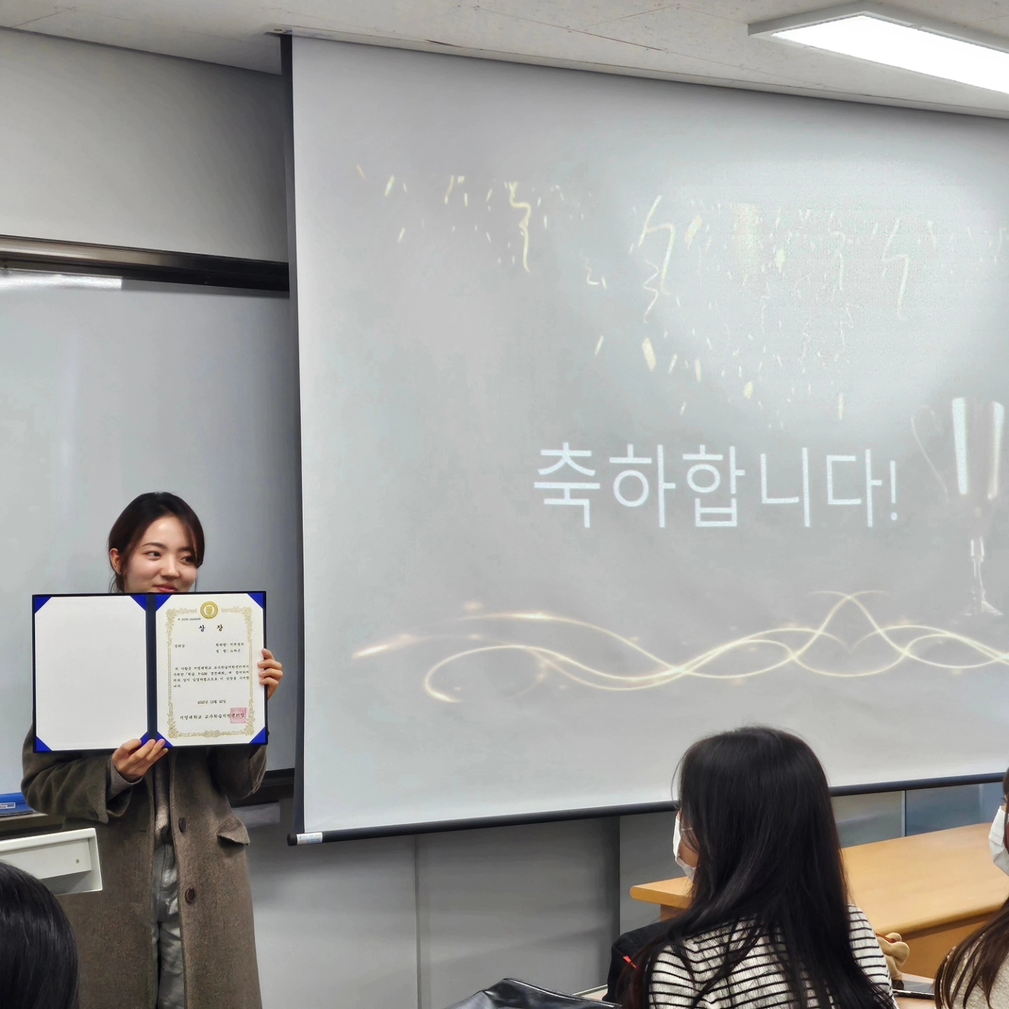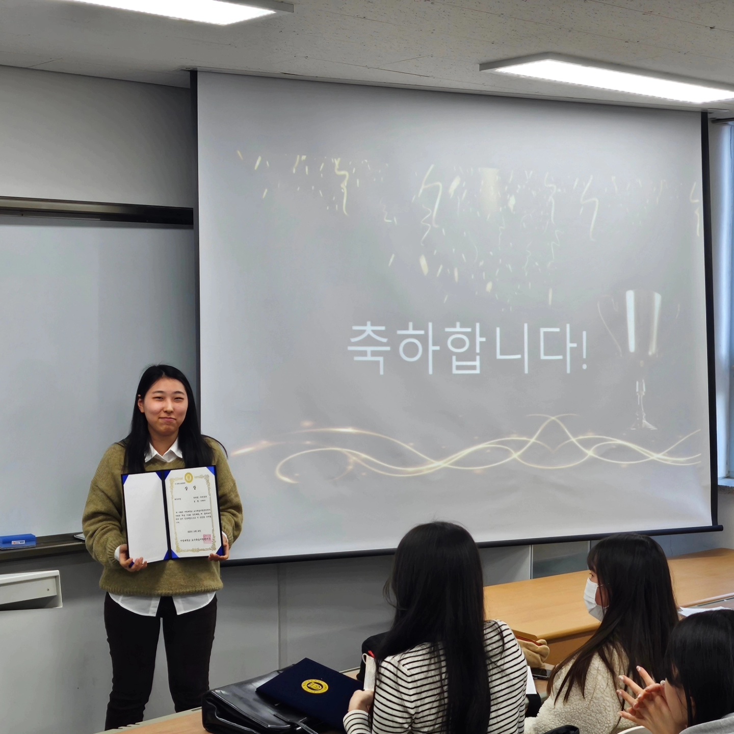 최우수상 2학년 이*지, 우수상 2학년 박*정, 장려상 2학년 노*은 학생이 수여받았습니다 ^^ 축하합니다^^