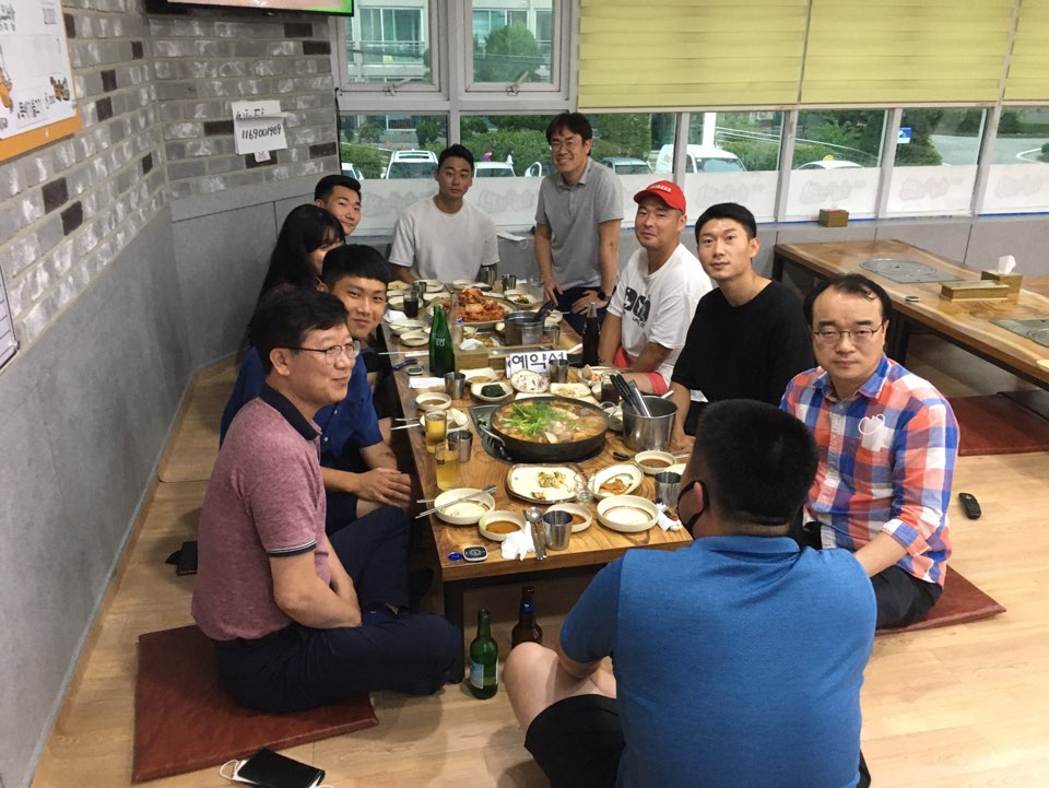 천종철 학과장님, 장철인교수님 등 지도교수님들과 함께 코로나 등등 으로 지난 1학기를 열심히 마친 1학년, 2학년 들이 7월 28일 종강식을 가졌다 .