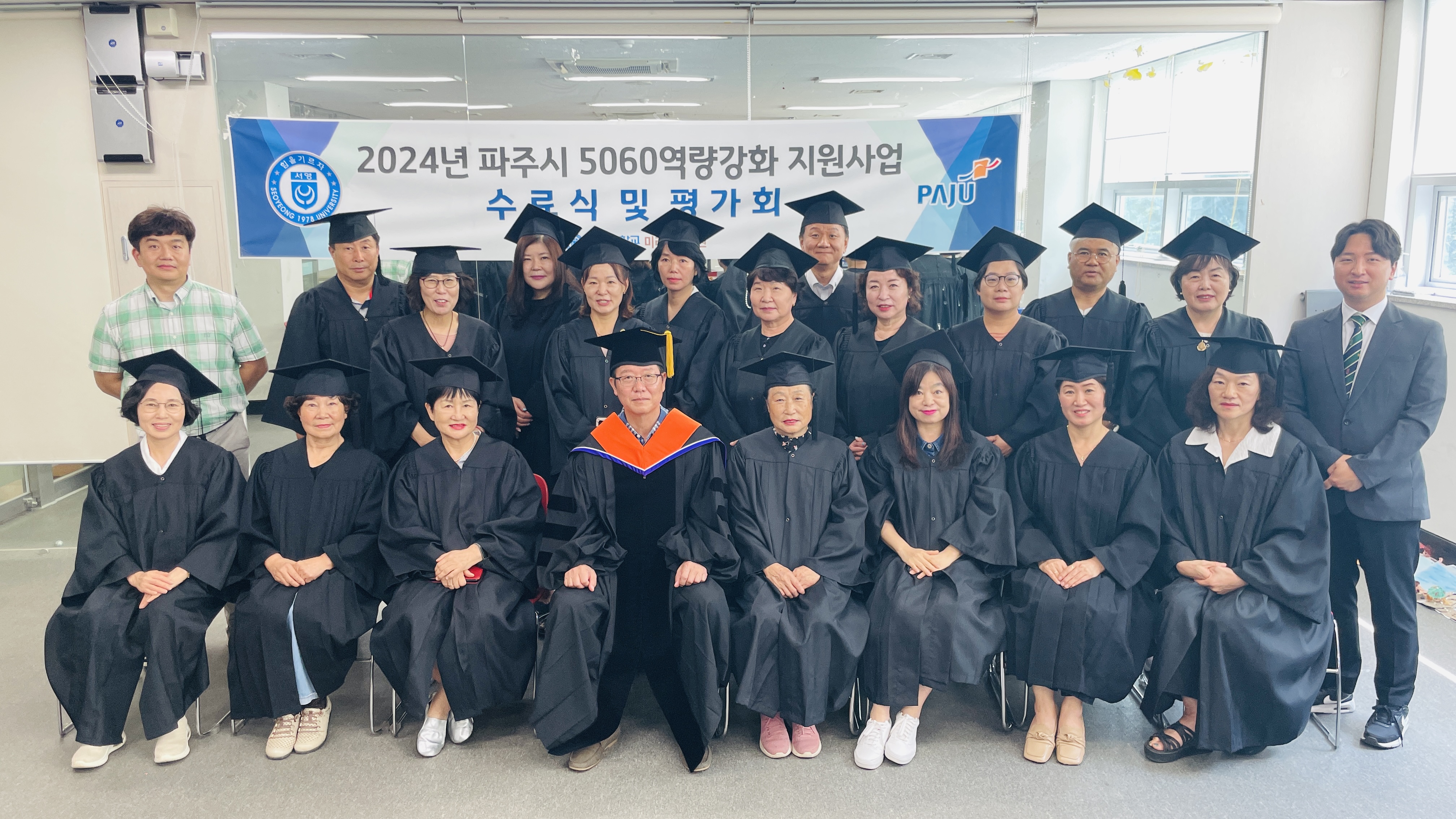 ○. 우리대학(총장 김정수) 미래평생교육원(원장 천종철)은 8월 9일(금) 파주시 50,60 인생설계 ‘아리아 아카데미 수료식'을 진행하였다. 해당 과정은 파주시 거주중인 중장년들의 평생교육을 지원하기 위하여 서영대학교와 파주시가 함께 진행한 역량강화 과정이다. 인생설계 학교는 2024년 6월부터 8월까지 10주간 건강, 관계, 재무, 취업 등의 과정으로 운영되었으며, 이 과정을 통해 약 20명의 수료생을 배출하였다.