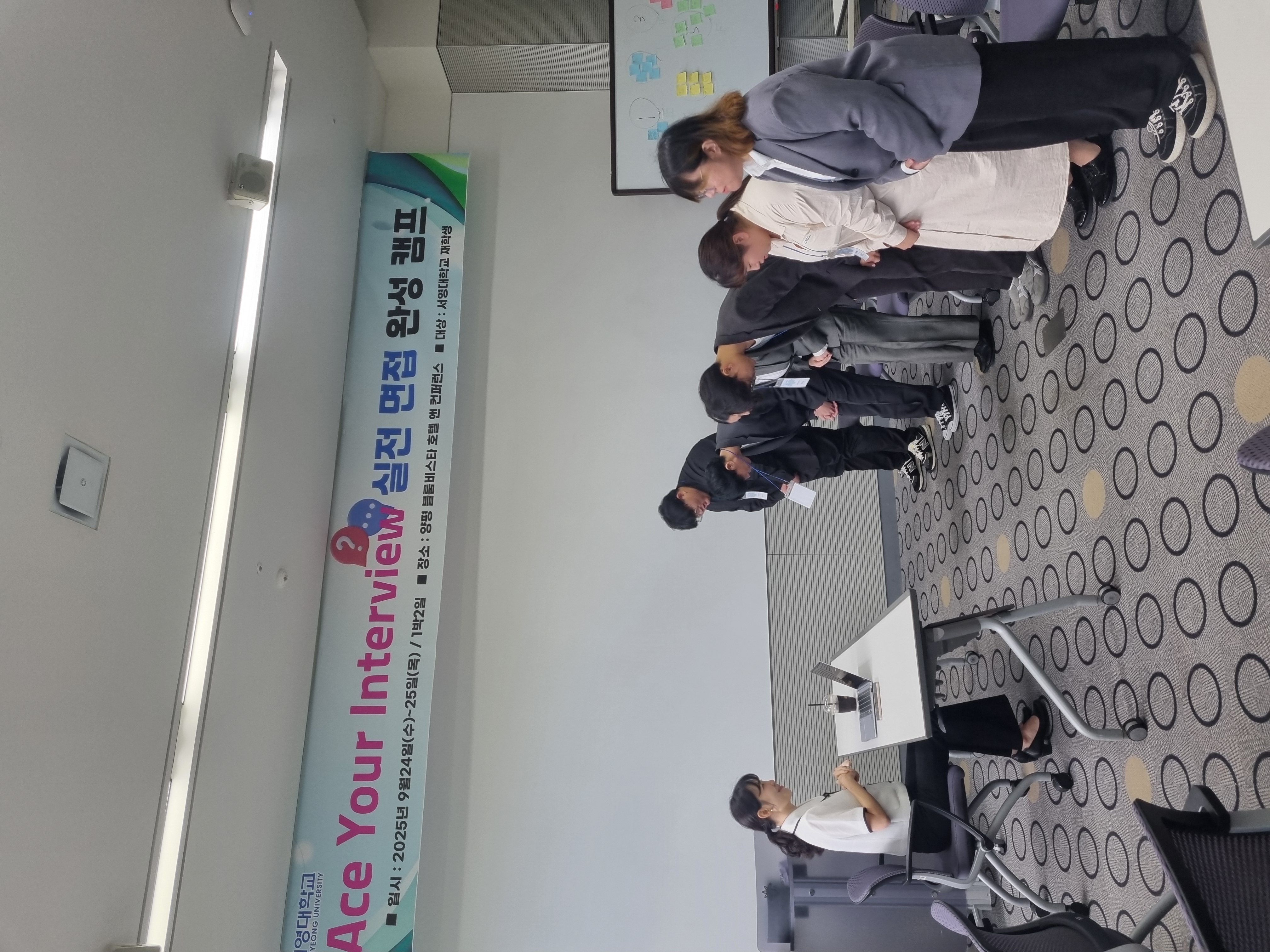 ○ 이번 캠프는 9월 16일(월) ‘자기소개서 작성 특강’ 사전교육을 시작으로 진행되었다. 이어 ▲ACE Briefing:2025 면접 트렌드 인사이트 ▲ACE Decode: 질문의 본질을 꿰뚫다 ▲ACE Script: 1분 자기소개 완성하기 ▲ ACE Pitch: 나를 말하는 기술 실전나 ▲ACE Etiquette: 태도와 매너의 합격 기준 ▲ACE Task: 협동과 몰입의 시간 ▲ACE Battle: 실전 모의면접 ▲ACE Reflection: 모의면접 피드백&자기소개마무리 활동으로 진행되었다.